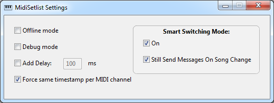 Smart Switching – MidiSetist has the option to ignore MIDI messages that are identical from the previous preset (per MIDI channel, when moving back and forward between presets). Meaning no doubled MIDI messages sent to a device (and less likely to cause any unnecessary breaks in the sound).