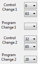 Drop down menus to enter the second Program Change message for a MIDI Channel.